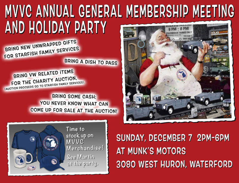 Bring VW related items for the charity auction, (auction proceeds go to Starfish Family Services).